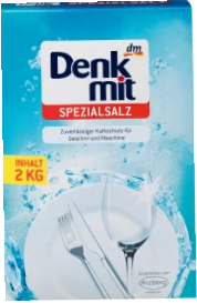 Специальная соль Denkmit Spezialsalz эффективно смягчает воду и улучшает работу посудомоечной машины, усиливая действие моющего средства и удаляя белый налет и следы подтеков на вашей посуде.