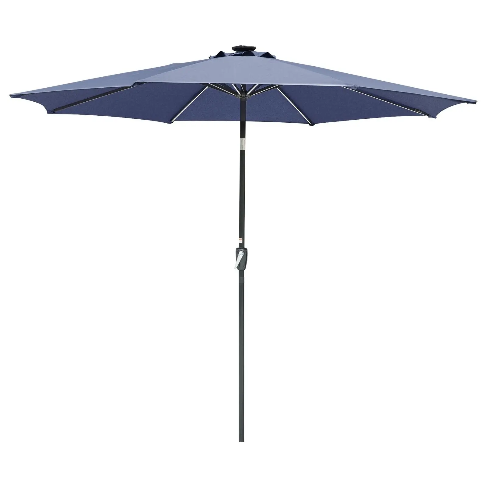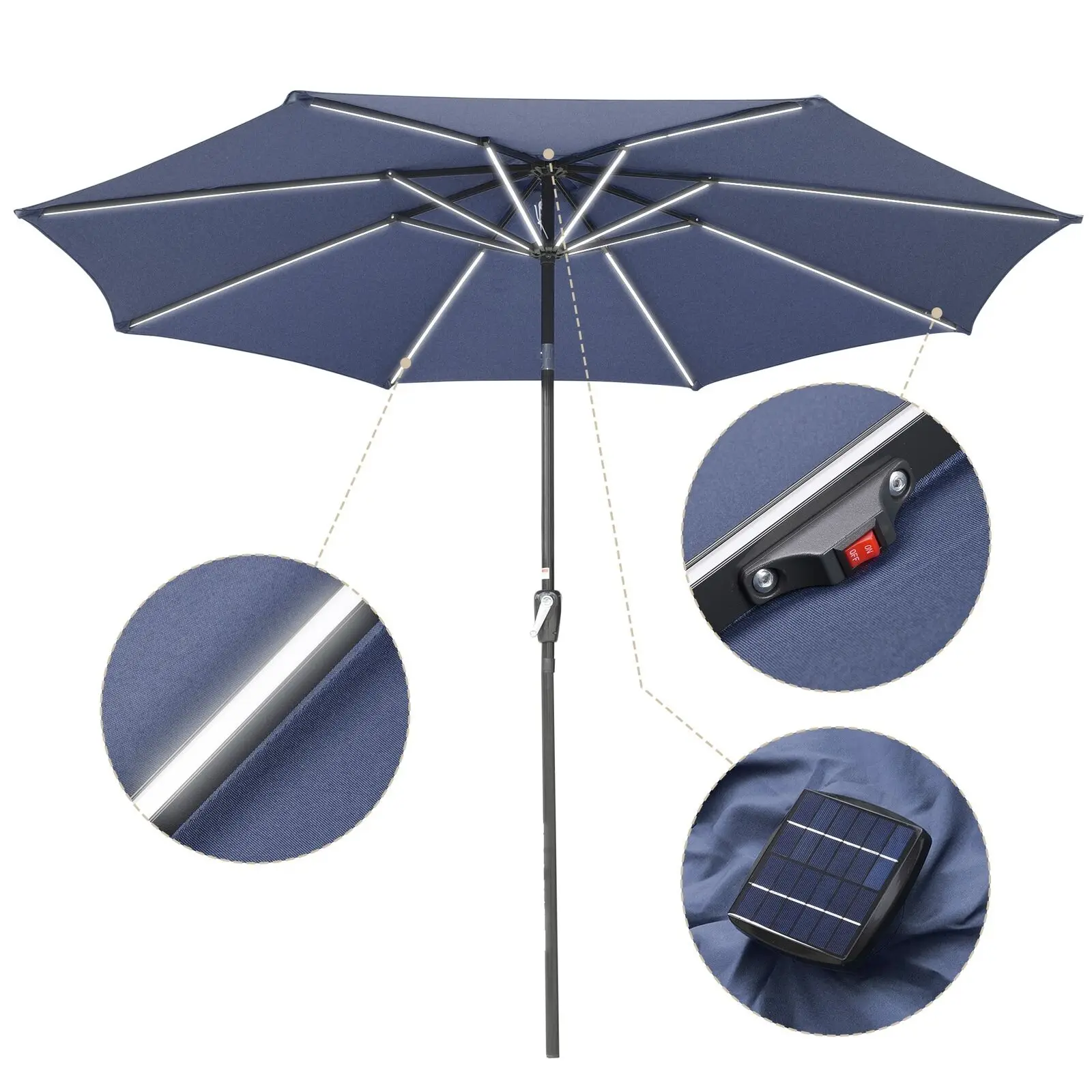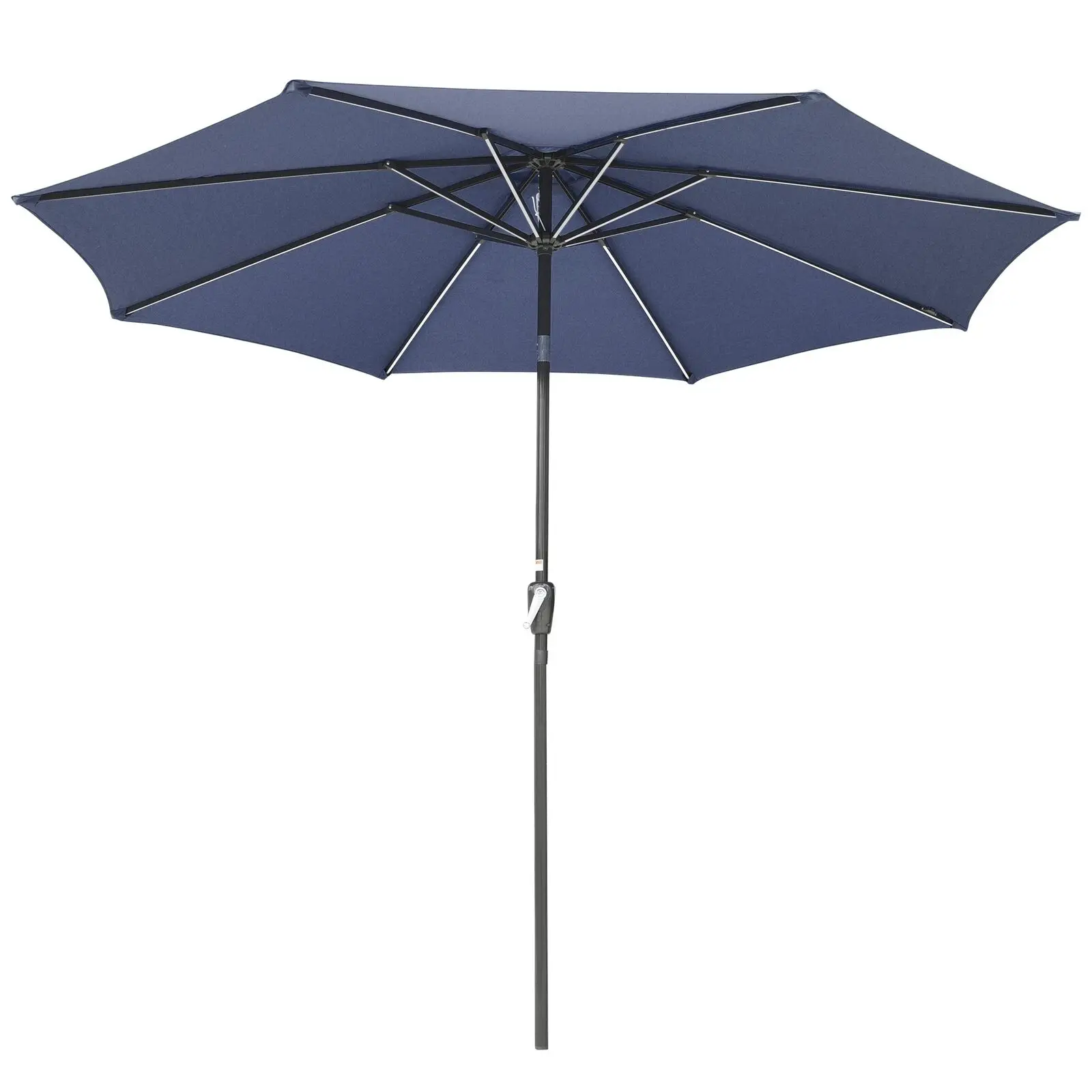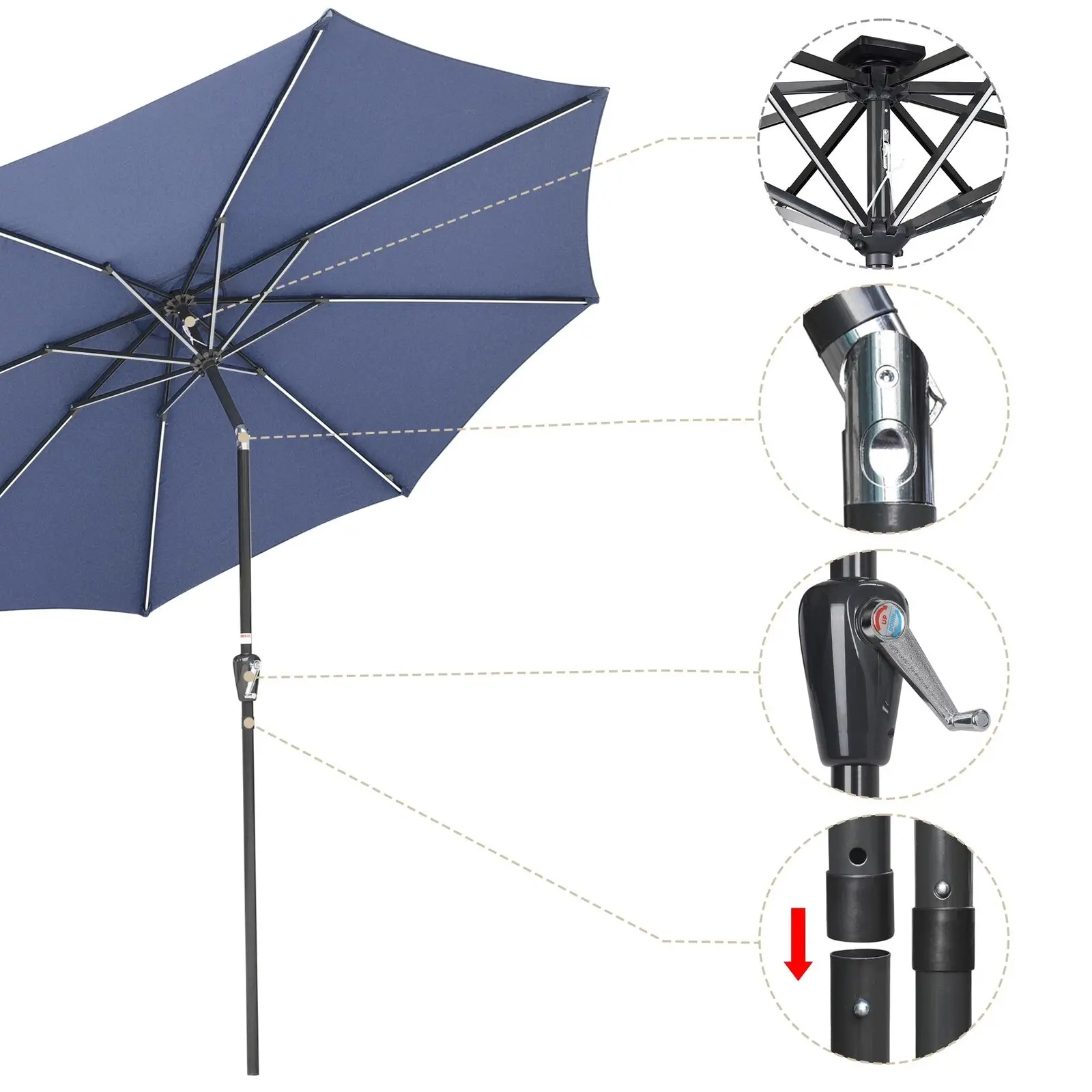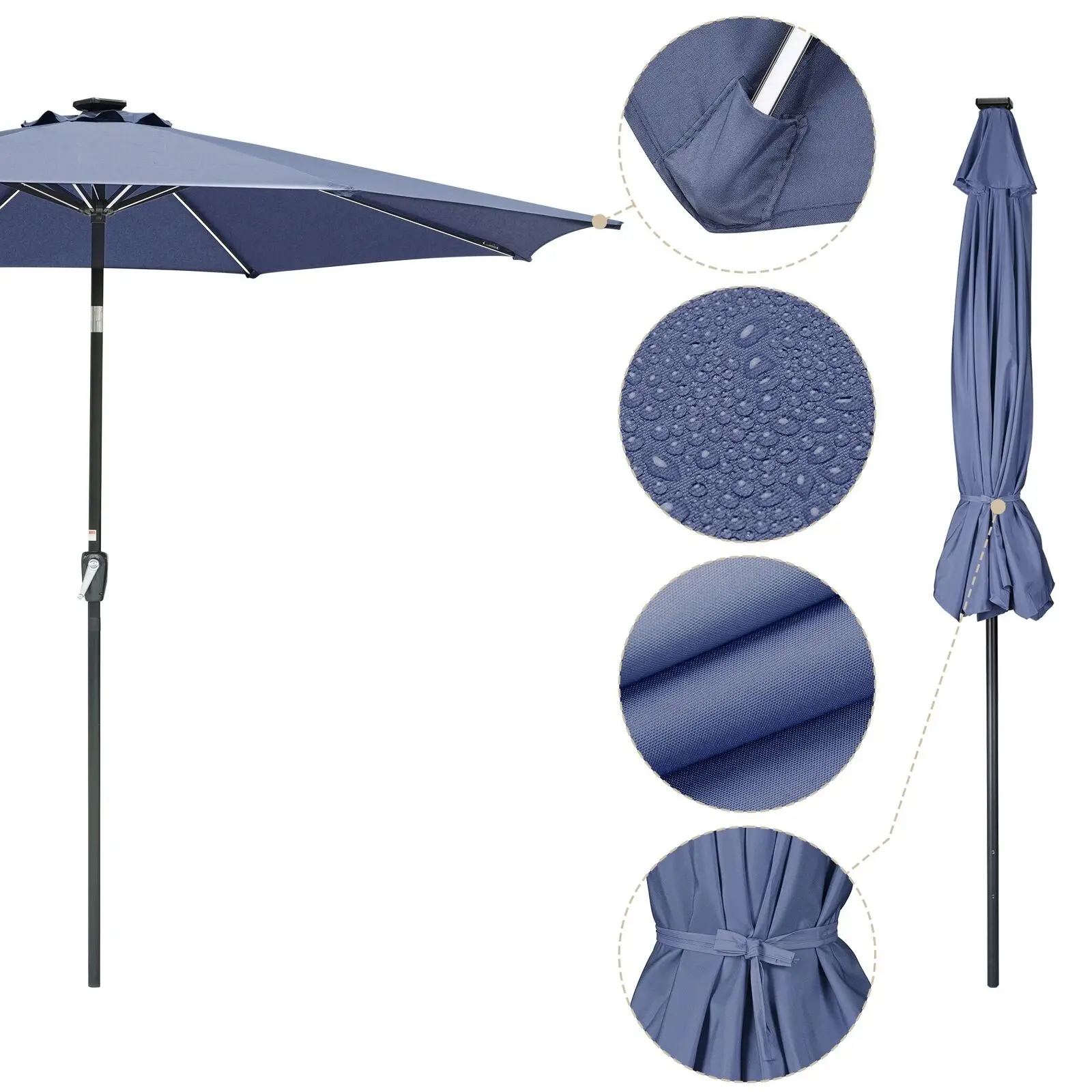 Сопротивление выцветанию 9 футов зонт для внутреннего дворика с 16 светодиодными лентами темно-синий