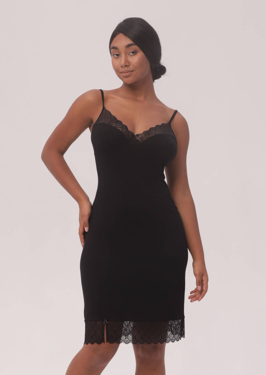 95% viscose, 5% elastaneУкрасьте свой вечер кружевной сорочкой из коллекции Black Panters. В этом романтичном домашнем платье вы будете неотразимы, изделие невероятно красивое - очень тонко подчеркивает фигуру и выделает ее сильные стороны. Благодаря сексуальному оформлению кружевом, сорочка выглядит богато и роскошно. Тонкие бретели открывают плечи, широкий вырез дает полюбоваться зоной декольте. Внизу изделия есть небольшой разрез в кружеве, предусмотрительно сделан для того, чтобы сорочка не стесняла ваши движения при ходьбе.
