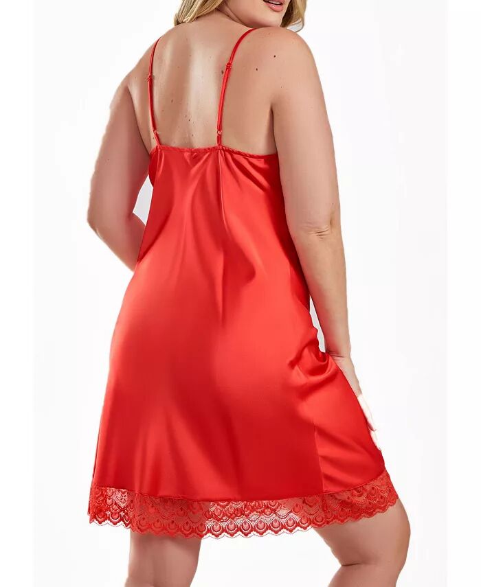 Сорочка размера плюс из ультрамягкого атласа и кружева iCollection, красный