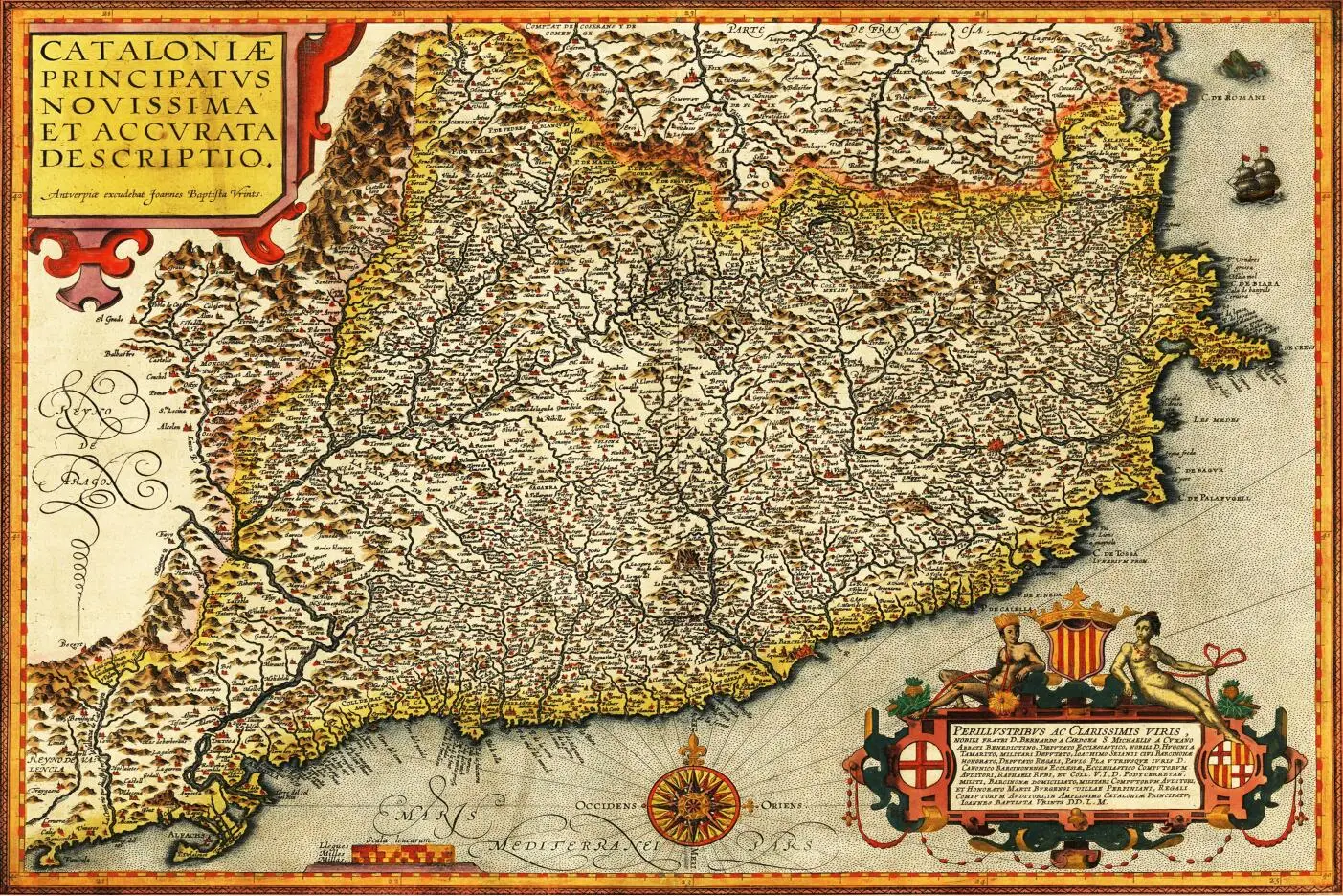 Состаренная карта, состаренный 1608, Каталония, историческая большая копия, искусство, Шелковый плакат, домашний декор для стен