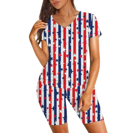 Qufokar Sheer Dress Bathing Suits for Women Over 50 Sleeve Short Independence Women Top Pants Casual Short Print Set Day Pajama Women S Shorts Suit