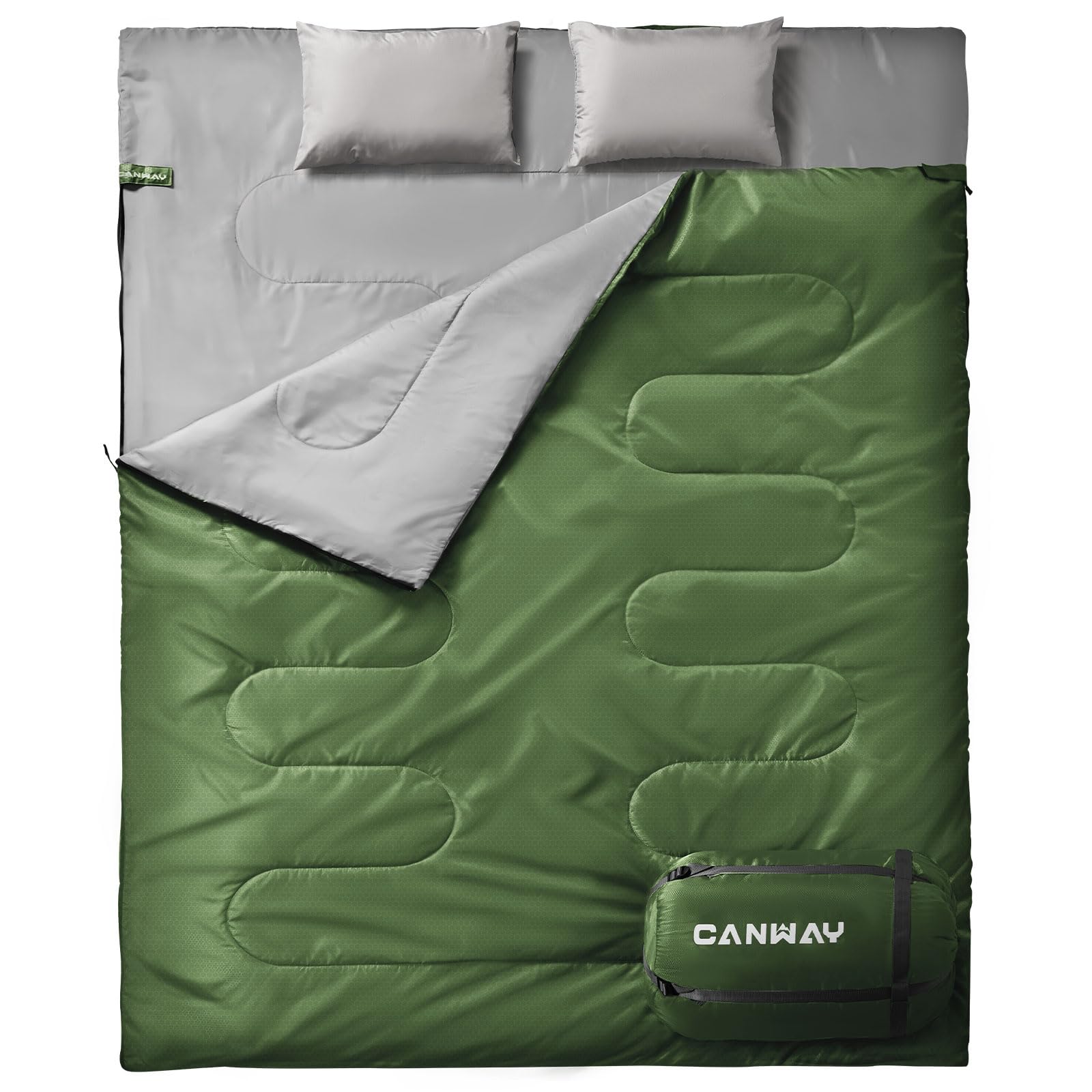 Спальный мешок CANWAY для 2 человек Водонепроницаемый спальный конверт Можно спать в доме при стихийных бедствиях Минимальная температура 0 Включает 2 подушки и набор для хранения