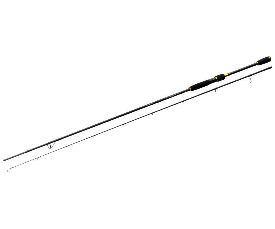 Серия спиннинговых удилищ, включающая в себя широкий спектр моделей для ловли в самых разнообразных условиях. Бланки различны по строю, при этом даже у самых быстрых из них под нагрузкой в работу включается большая часть, обеспечивая прекрасные кастинговые характеристики и амортизацию рывков рыбы. В то же время они обладают упругостью и жесткостью, достаточными для выполнения сложных неравномерных проводок. Удилища оснащены облегченными пропускными кольцами. Диаметры вставок и высота опор подобраны таким образом, что леска, сходя со шпули катушки, образует короткий конус, а затем идет вдоль бланка по прямой. Данная концепция подразумевает использование на верхнем колене очень легких колец с короткими опорами, что повышает чувствительность, разгружает бланк и способствует увеличению дальности заброса. Удобная разнесенная рукоять из EVA оснащена эргономичным катушкодержателем. Все модели серии спроектированы как многоцелевые. Они прекрасно подходят для самых разных приманок и любых способов их анимации. И главное – эти снасти обладают просто беспрецедентными характеристиками, как для своей цены.