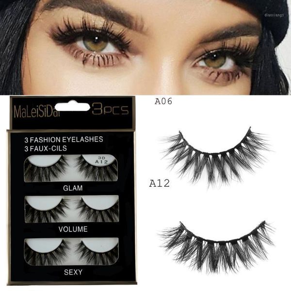 3pairs 3d thick cross long false eyelashes women handmade attractive reusable voluminous wispy fake eye lashes extension tools1