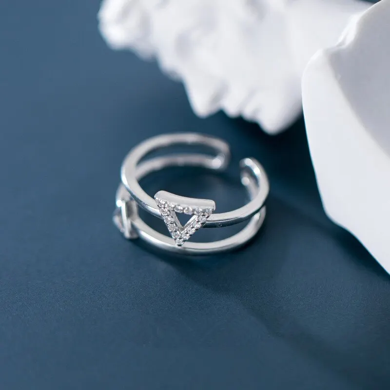 A00887 100% 925 Sterling Silver Minimalist Geometric Triangle Hollow Double Rings for Women Punk Party Fine Jewelry