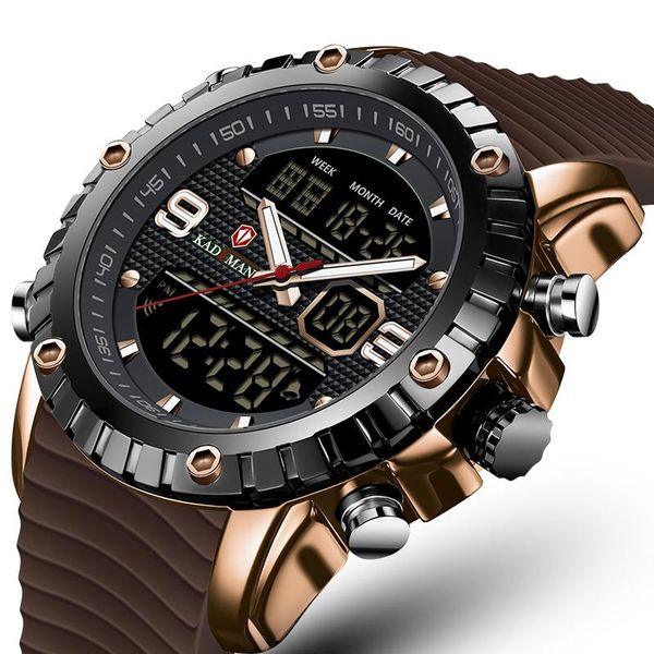 wristwatches 2021 sport watch dual time men watches 50m waterproof male clock military for s resisitant gifts, Slivery;brown