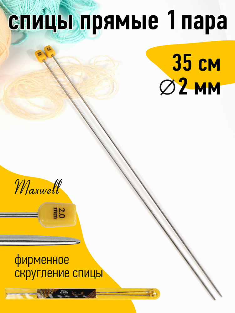 Спицы для вязания прямые Maxwell Gold, металл 2,0 мм /35 см (2 шт), Серебристый, прямые Gold