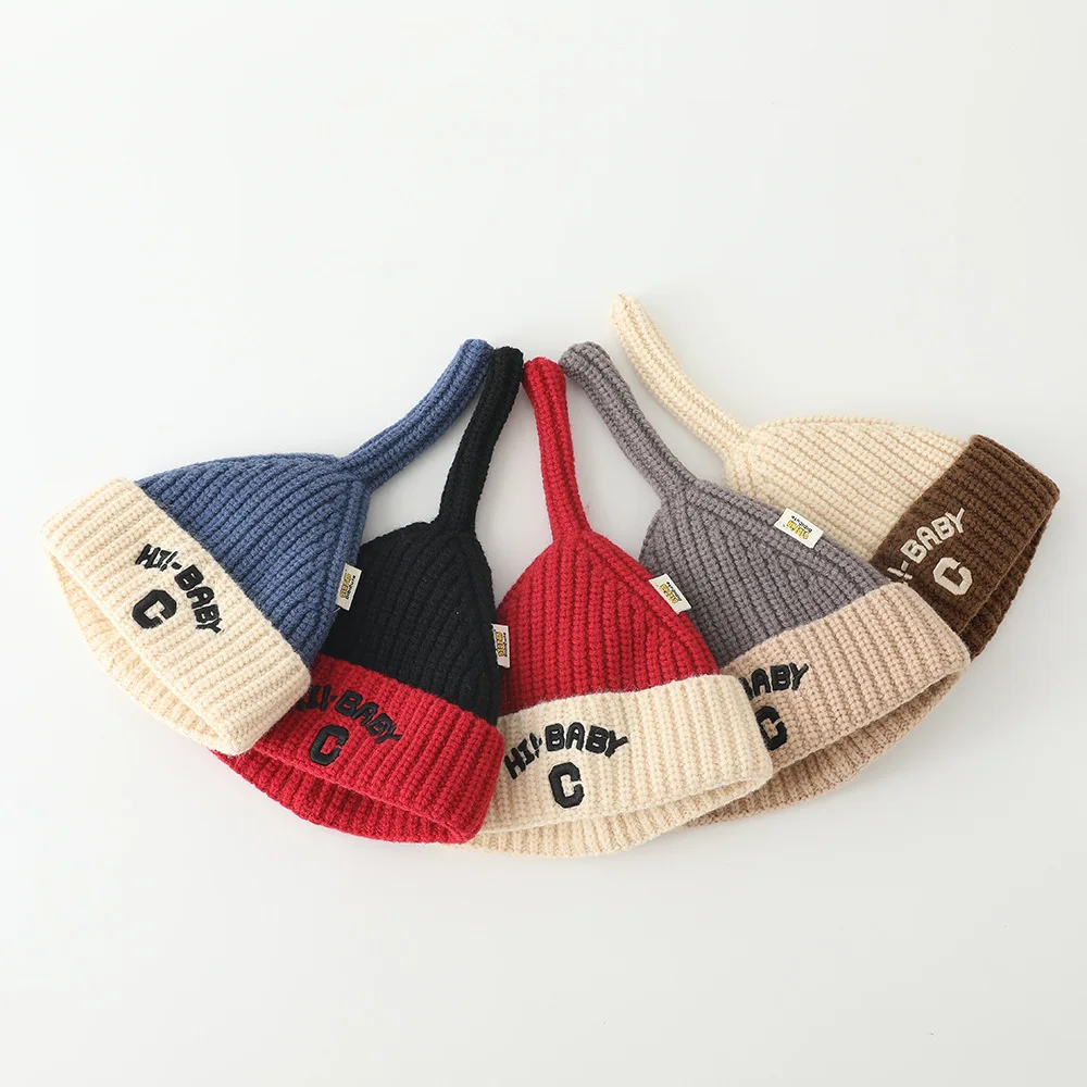 Сплошная цветная детская шапка с буквенным принтом, зимняя теплая вязаная шапка для девочек и мальчиков, винтажная вязаная крючком шапочка с вышитыми буквами для малышей
