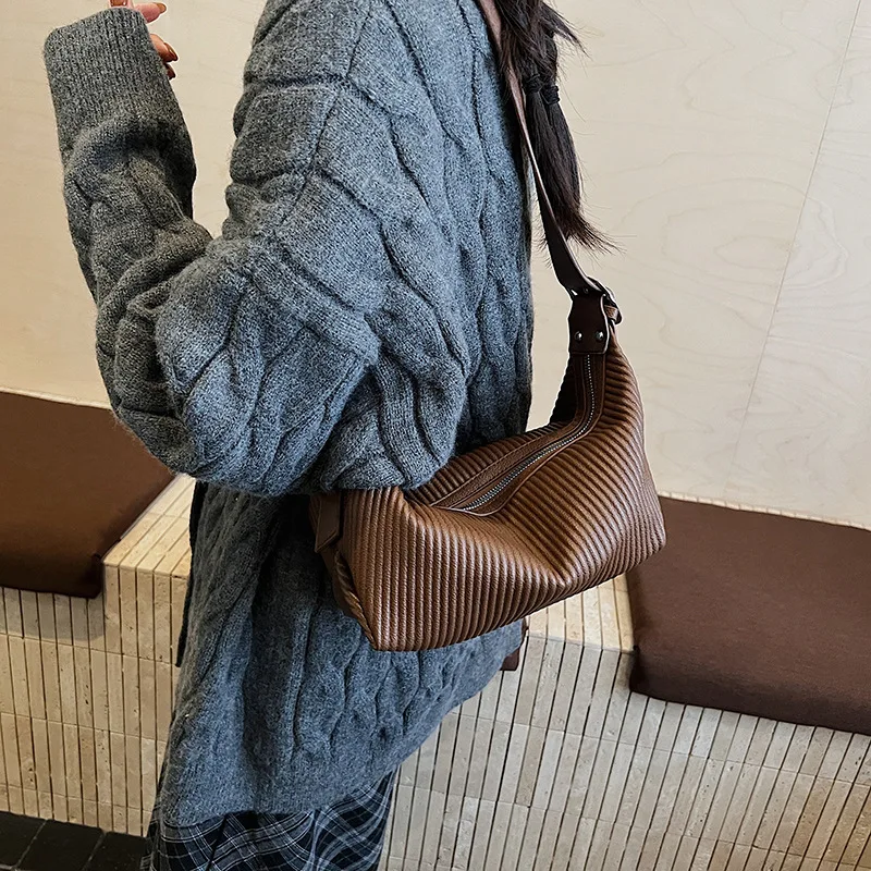 Сплошная цветная сумка для пельменей в стиле ретро, осенне-зимняя новая корейская версия, нишевая дизайнерская плиссированная сумка-мессенджер с широким плечевым ремнем