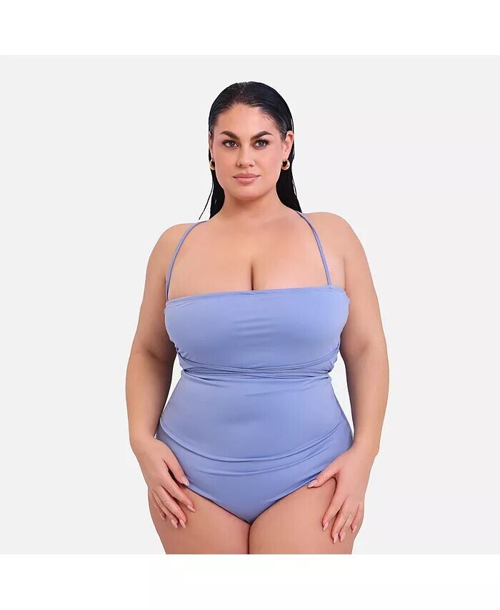 Сплошной купальник с завязкой на талии больших размеров Sunny Rebdolls, синий