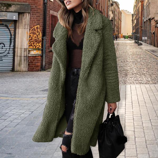 Сплошной цвет плюшевая куртка женское пальто женское осенне-зимнее утолщенное плюшевое пальто с лацканами с длинным рукавом шерстяное пальто сплошной цвет повседневная длинная верхняя одежда