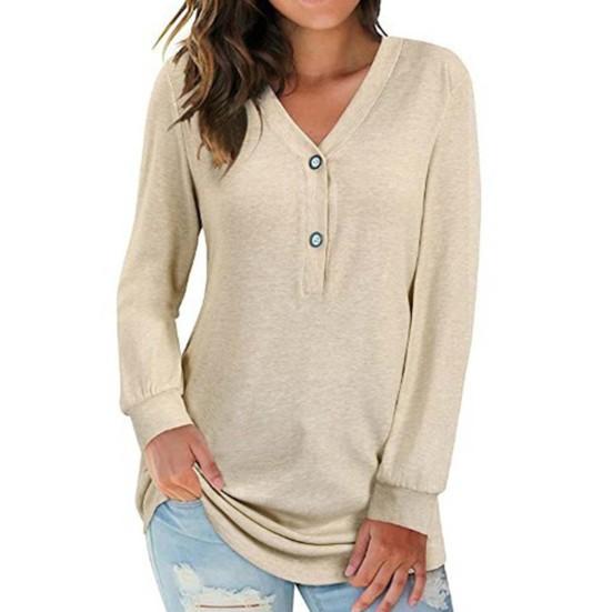 Сплошной цвет с леопардовым принтом женский топ с длинным рукавом и v-образным вырезом, свободная туника XL хаки