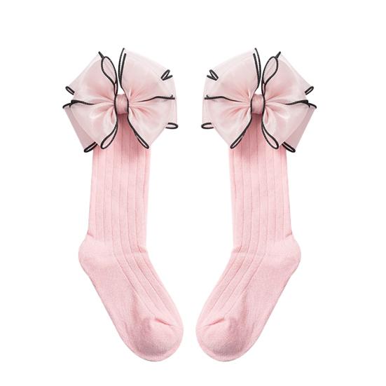 Сплошной цвет с милым бантом для маленьких девочек, мягкие дышащие хлопковые длинные носки 4-6years розовый