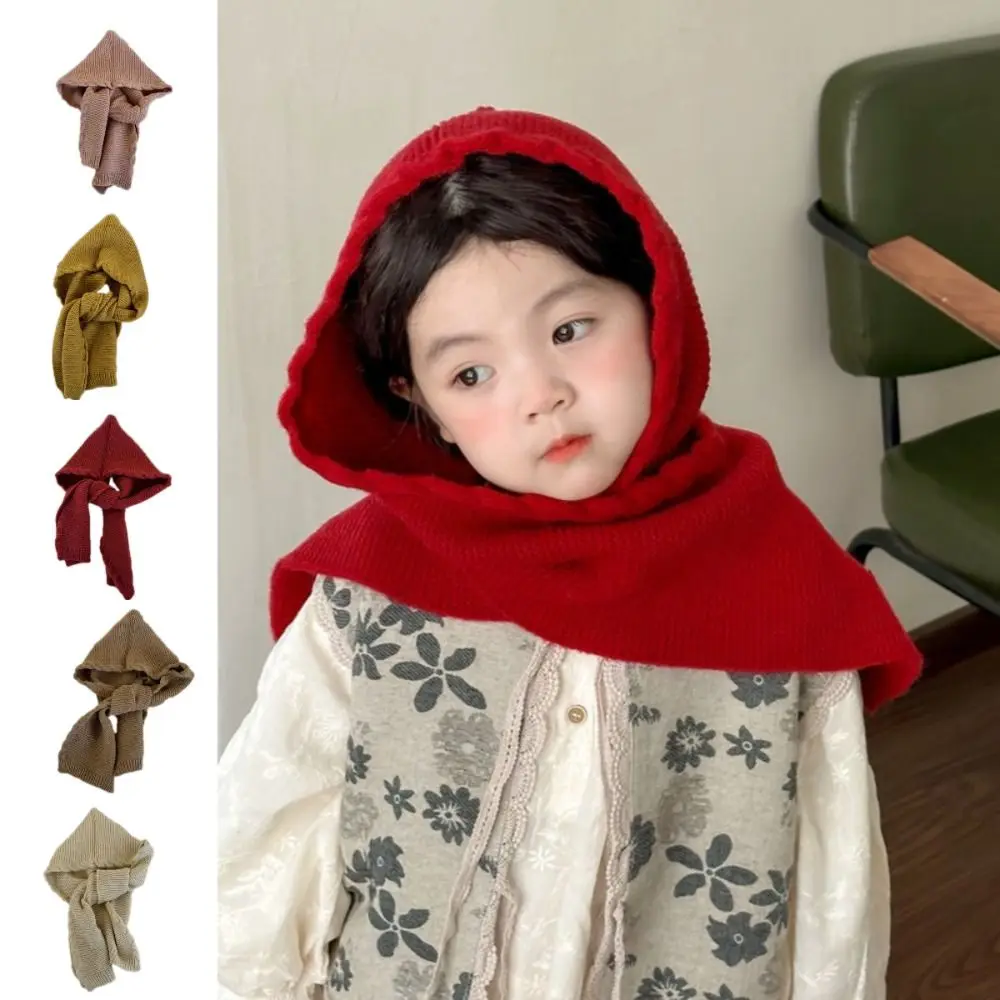 Сплошные детские шапки в стиле ретро, вязаная простая дизайнерская вязаная шапка с капюшоном, универсальная детская шаль, шарф, зимний сезон