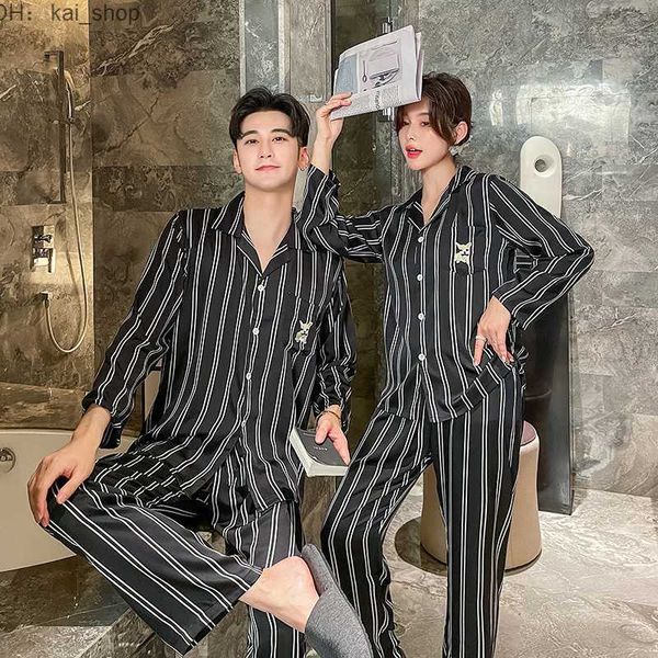 piece pants new pajamas autumn winter ice silk long-sleeved striped suit wear oversized household clothes1, White