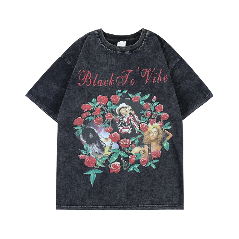 Summer Short Sleeve Character and Floral Painted Retro Tees for Men Streetwear Round Neck Casual Oversized Tshirt Loose