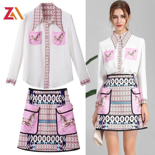 dress zalady fashion designer autumn suit women single breasted long sleeve shirts pockets mini skirt vintage two piece set outfit, White