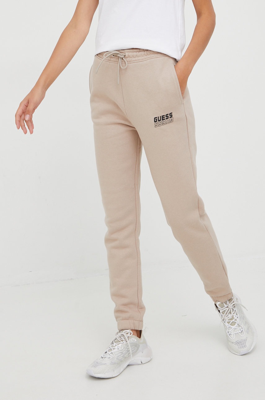 Спортен панталон Guess в бежово с принт, Бежов