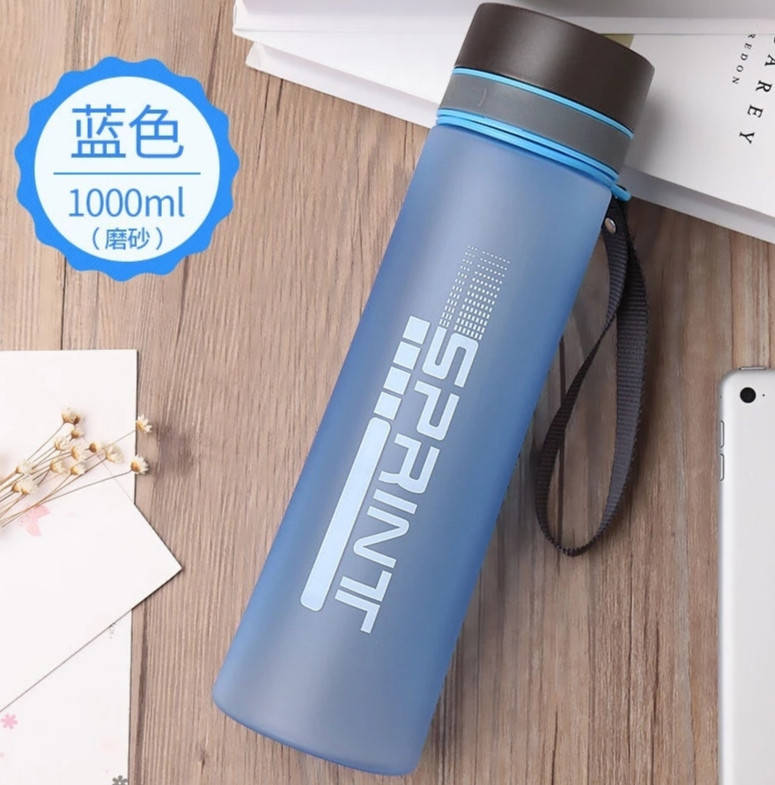 Спортивная бутылка для воды и напитков 1000мл голубая матовая.