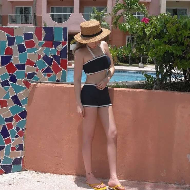 Korean-Style Fresh Split Type Boxers Bathing Suit Womens Slimming Slim Fit Cover Belly Knitted Holiday Students Swimwear /30