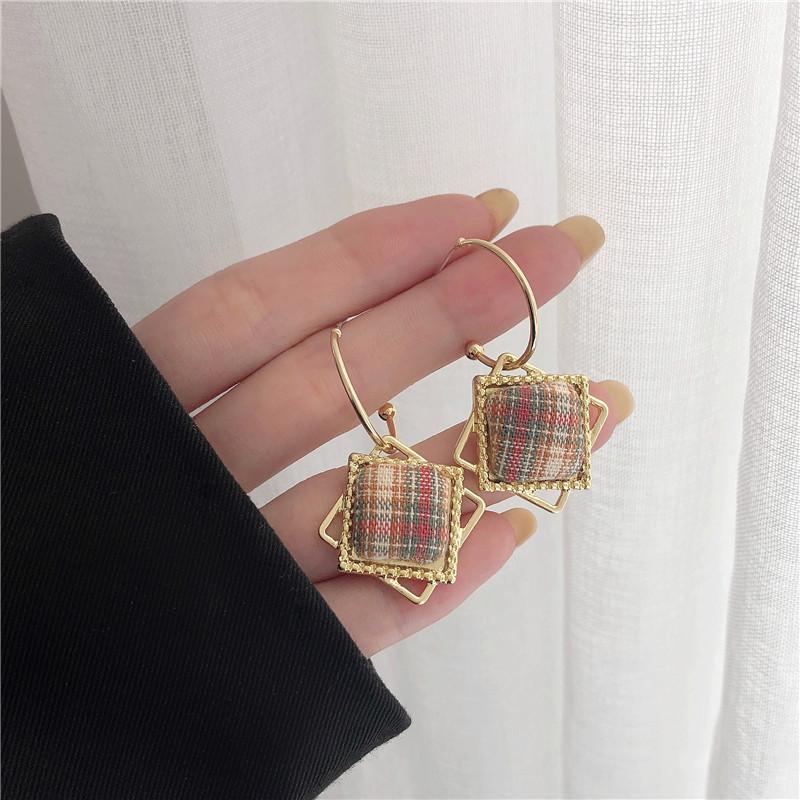 Square grid earrings qiu dong female fashion personality contracted 2020 new tide C shape stud earrings