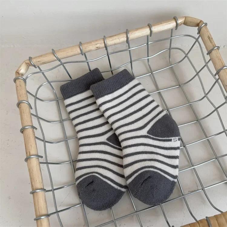 Спортивные бежево-серые носки для мальчиков, модные полосатые носки с буквой R для малышей, весна-осень, мягкие махровые носки S