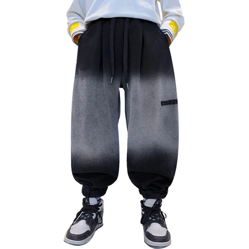 Спортивные брюки для мальчиков, джинсы с градиентным дизайном, с эластичным поясом, одежда для подростков, брюки из денима, 4-14 лет, весна