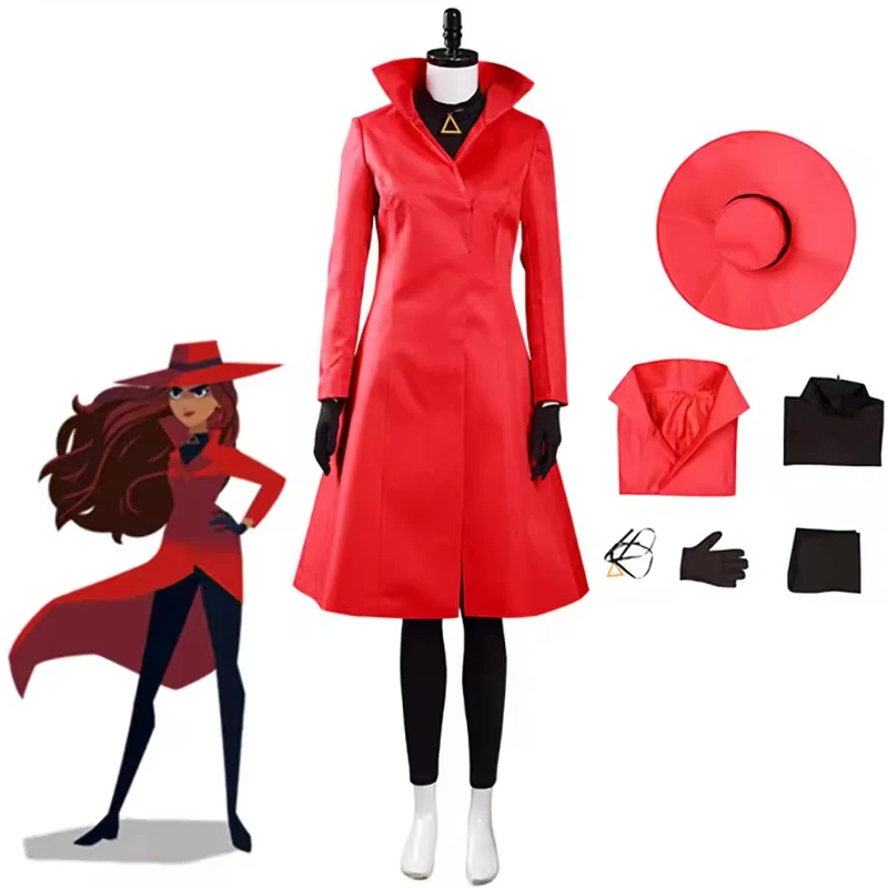 Аниме Кармен Сандиго Косплей Костюм Красное Платье со Шляпой Перчатки Хэллоуин Рождество Карнавал Вечеринка Ролевой Костюм