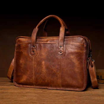 Vegetable Tanned Leather Business Travel Bag Full Grain Leather Men Briefcase Genuine Leather Laptop Messenger Bags