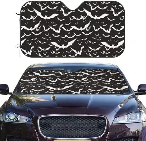 Halloween Cool Goth Gothic Bat Black and White Windshield Sun Shade Front Protector Folding Car Sun Visor Blocks Uv Rays Keeps Y