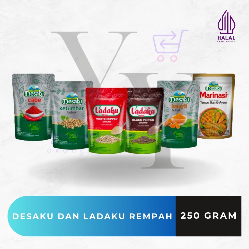 [POUCH] Desaku Kunyit / Ketumbar / Cabe / Marinasi / Ladaku Putih / Hitam / Bawang Putih Bubuk 250 gram