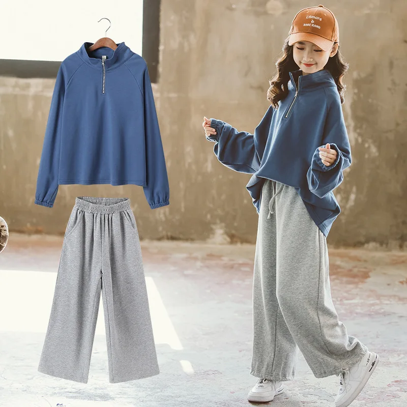 Спортивный костюм для девочек-подростков, модный Свободный свитшот, брюки с широкими штанинами, комплект из двух предметов, детская одежда, ...
