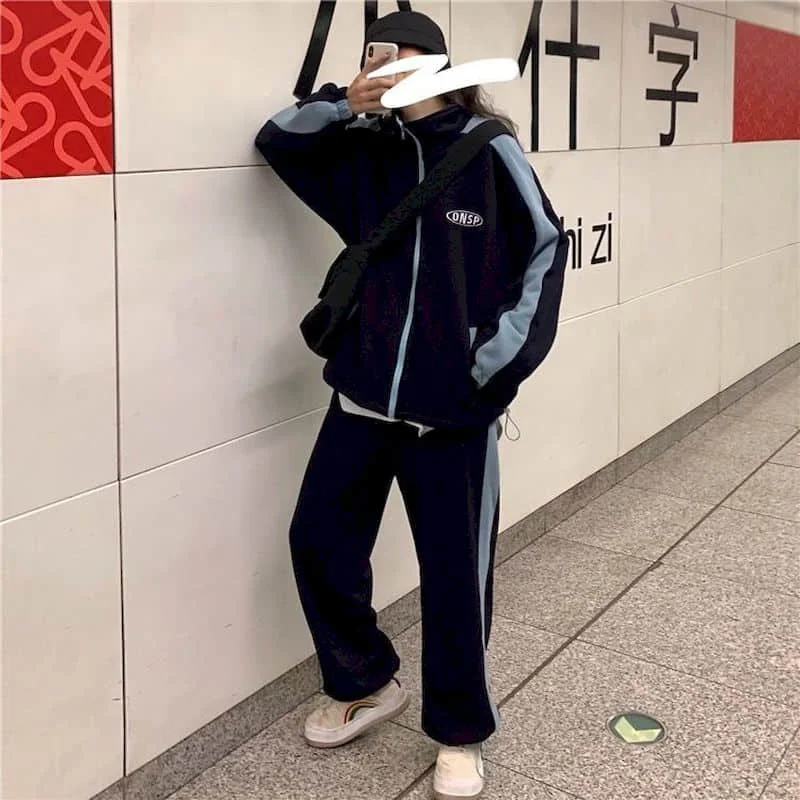 Спортивный костюм женский на весну и осень, Студенческая Корейская версия, свободная и тонкая модная повседневная Беговая одежда из двух ча...