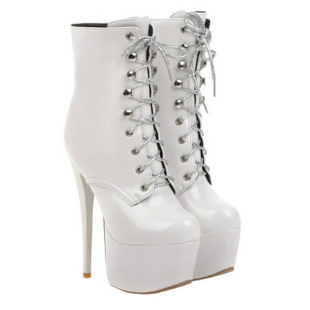 1Pair Stage Short Boots Woman Patent Leather Shoes High-Heel Boots Lacing Boots