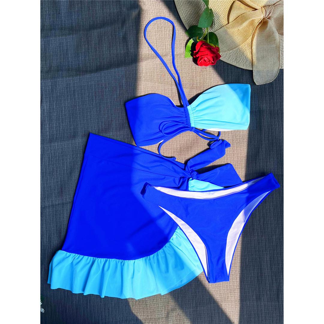 Сращивание с оборками саронг морщинистый бикини женский купальник женский купальник из трех частей бикини комплект купальный костюм купальный костюм S синий