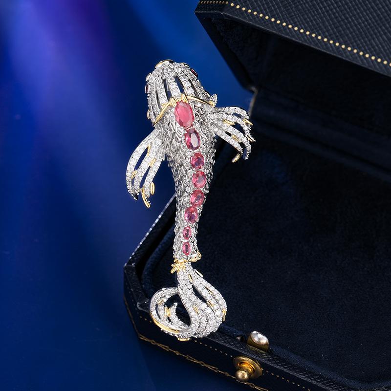 Средневековая тяжелая промышленность циркон брошь ретро ветер медное покрытие настоящее золото инкрустация бриллиантами изысканный кои булавка темперамент универсальный корсаж серебряный