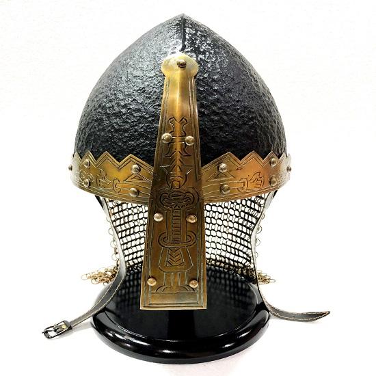Средневековый нормандский викингский антикварный черный шлем Купидона из железа и кольчуги с деревянной подставкой
