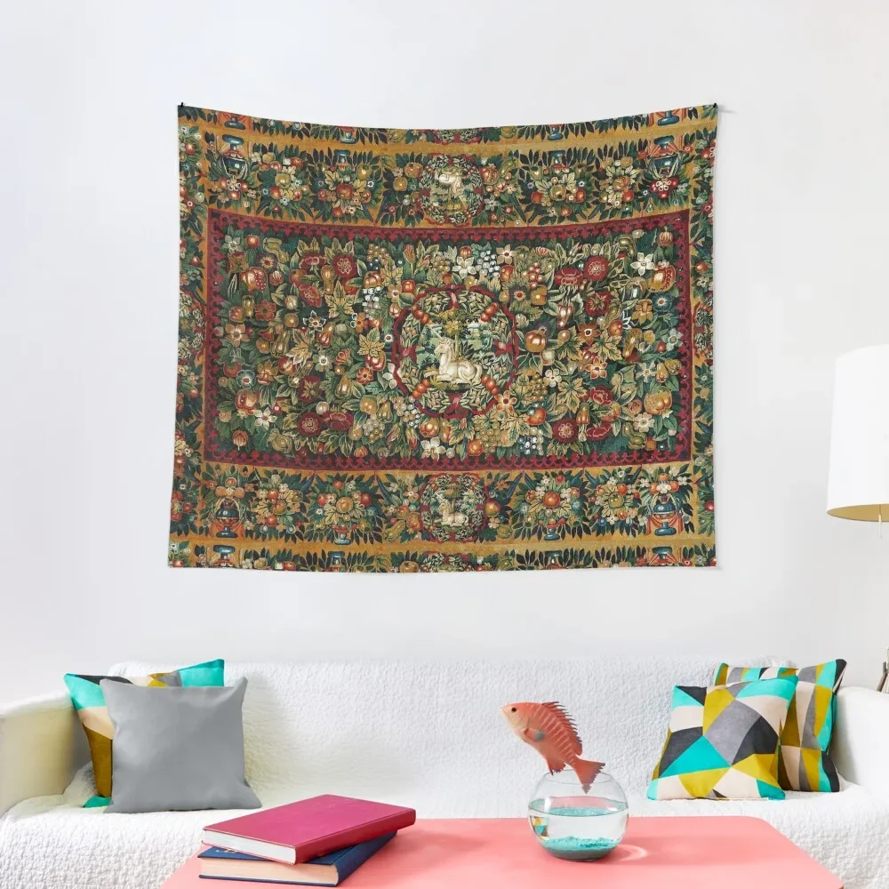 Средневековый цветочный гобелен с единорогом, предметы для украшения комнаты, аксессуары для домашнего декора, Подвесной Настенный декоративный настенный гобелен
