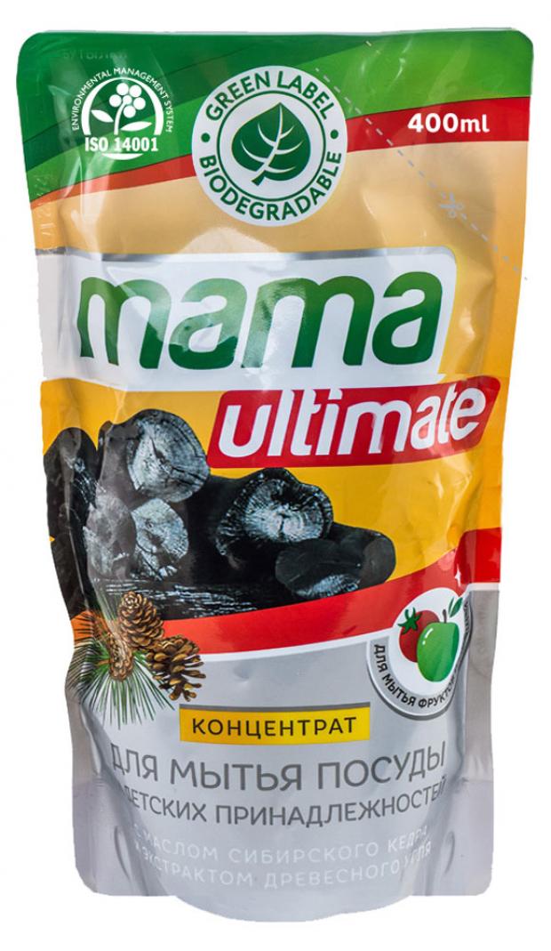 Средство для мытья посуды и детских принадлежностей Mama Ultimate с маслом сибирского кедра и экстрактом древесного угля, 400 мл