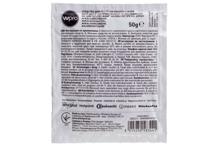 Средство для удаления накипи 50g Whirlpool (484000008800), Белый