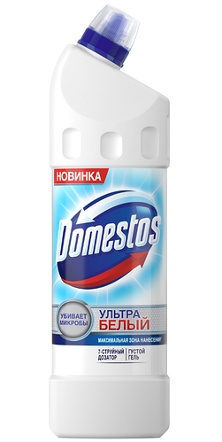 Новий Domestos Ультра Білий вбиває всі відомі мікроби навіть у важкодоступних місцях і дарує блиск і чистоту! Завдяки інноваційному 7-струйного дозатору Domestos ефективно вбиває мікроби і видаляє бруд, добираючись навіть до самих важкодоступних для очищення місць, забезпечує сяючу чистоту.