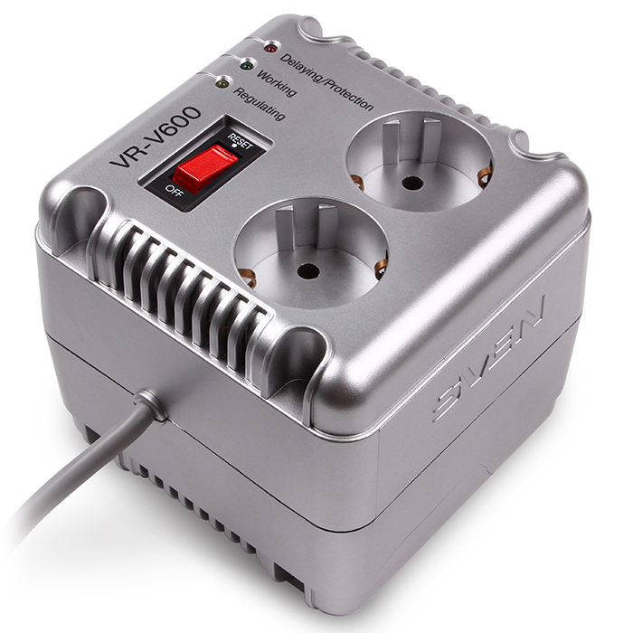 Стабилизатор напряжения Sven VR-V 600, 200Вт, EURO, серый (SV-015336), VR-V 600
