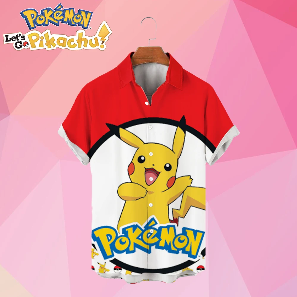 Мужские рубашки в стиле Пикачу с покемоном Y2k, летняя блузка оверсайз, новинка 2023, Детская уличная одежда в стиле Харадзюку, гавайская рубашка с аниме, милая