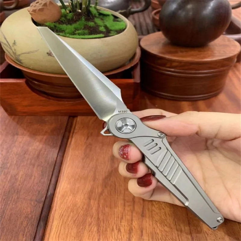 Стальной складной быстрооткрывающийся нож (сталь D2) с титановой ручкой