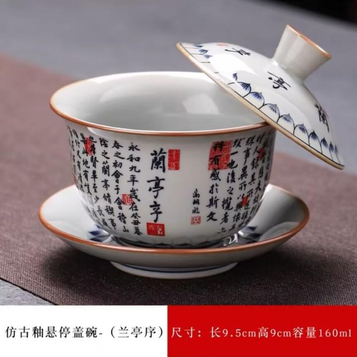Старая Керамика Грязно-голубой и Белый Фарфор Санцай Крышка-чаша Может Парить Чайная чашка Керамическая Чайная пиала Одинарный Большой Чайный набор для Кунг-Фу с Крышкой