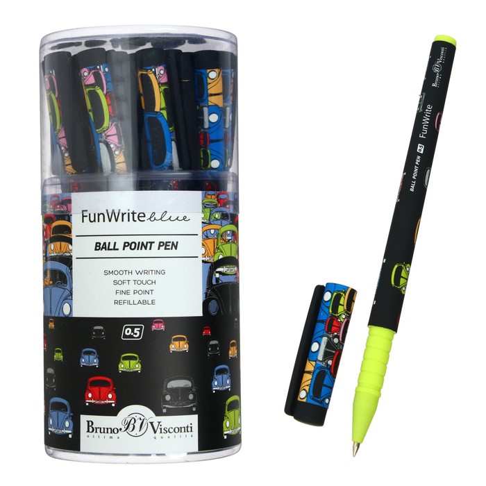 Ручка шариковая FunWrite «Цветные автомобили», узел 0.5 мм, синие чернила, матовый корпус Silk Touch