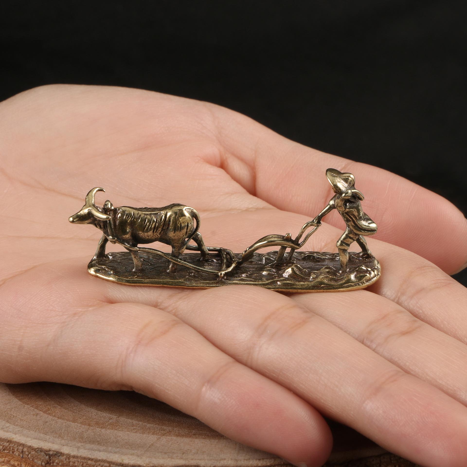 Старый Фермер и Корова Украшение Гостиной Винтажная Коллекция Домашнего Декора Чайный Питомец Бронзовая Резьба Ручки Металлические Изделия