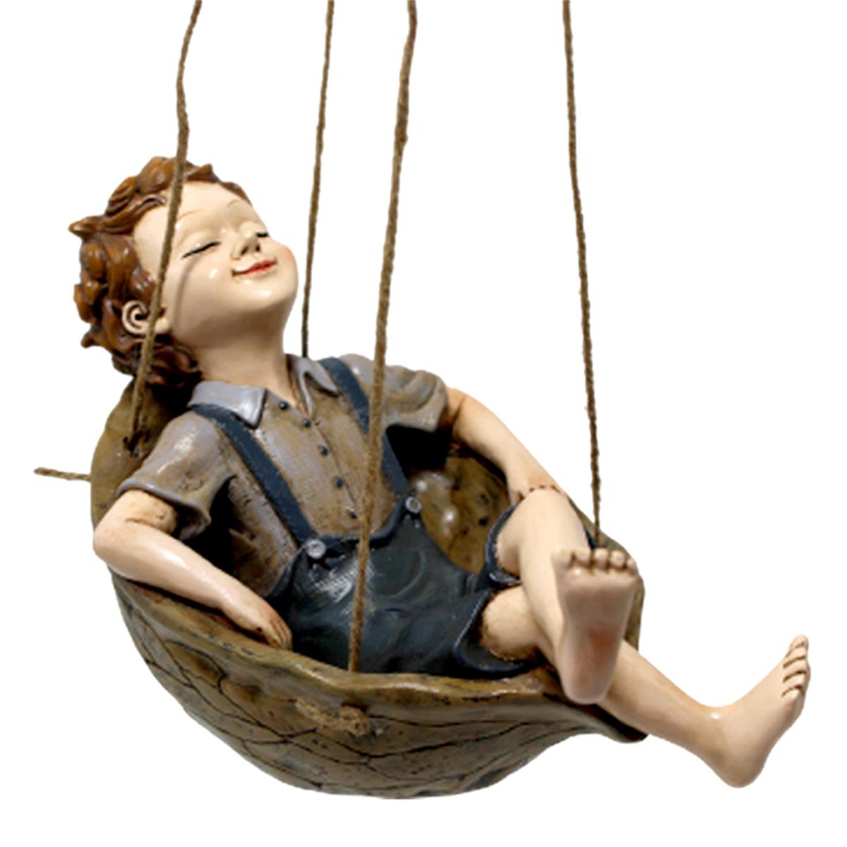 Статуэтка Мальчика на Качелях Беззаботная Атмосфера Садовая Полирезиновая Скульптура Украшение для Дома Офиса Рабочего Стола Гостиной Книга