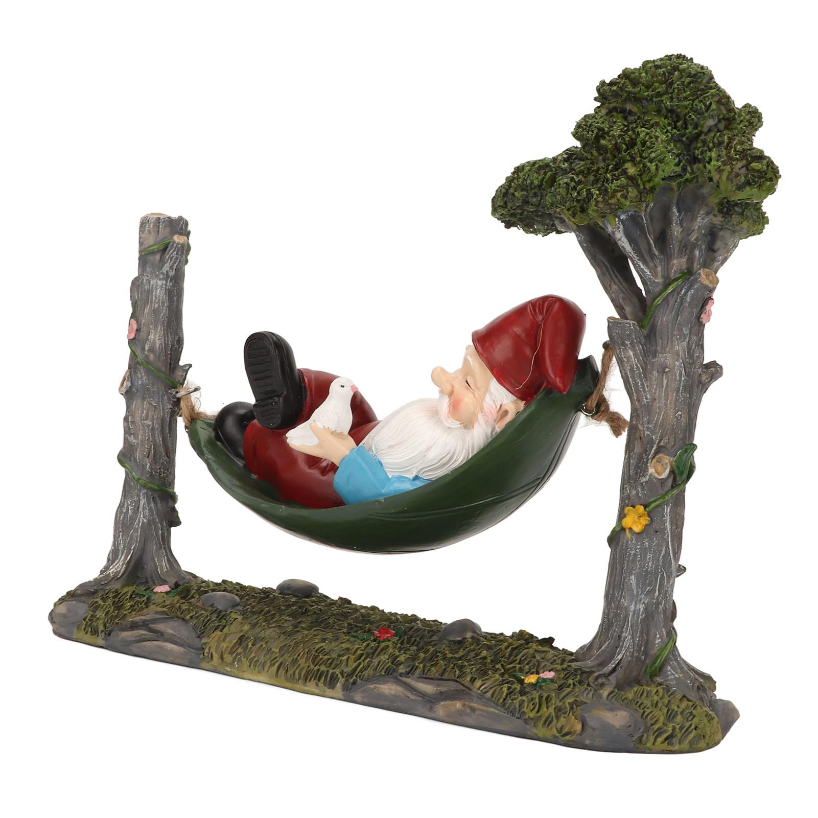 Статуэтка гнома в гамаке, расписанная вручную, из смолы, милая, забавная, садовая статуэтка гнома, украшение для улицы